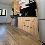 Det har et fuldt udstyret køkken og badeværelse med et badekar og en bruser. Nogle af værelserne har udsigt til bjerget.